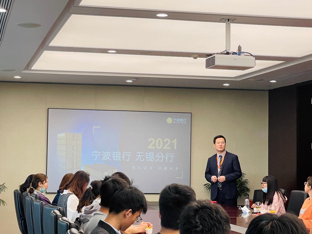 潘老师为同学们介绍宁波银行无锡分行