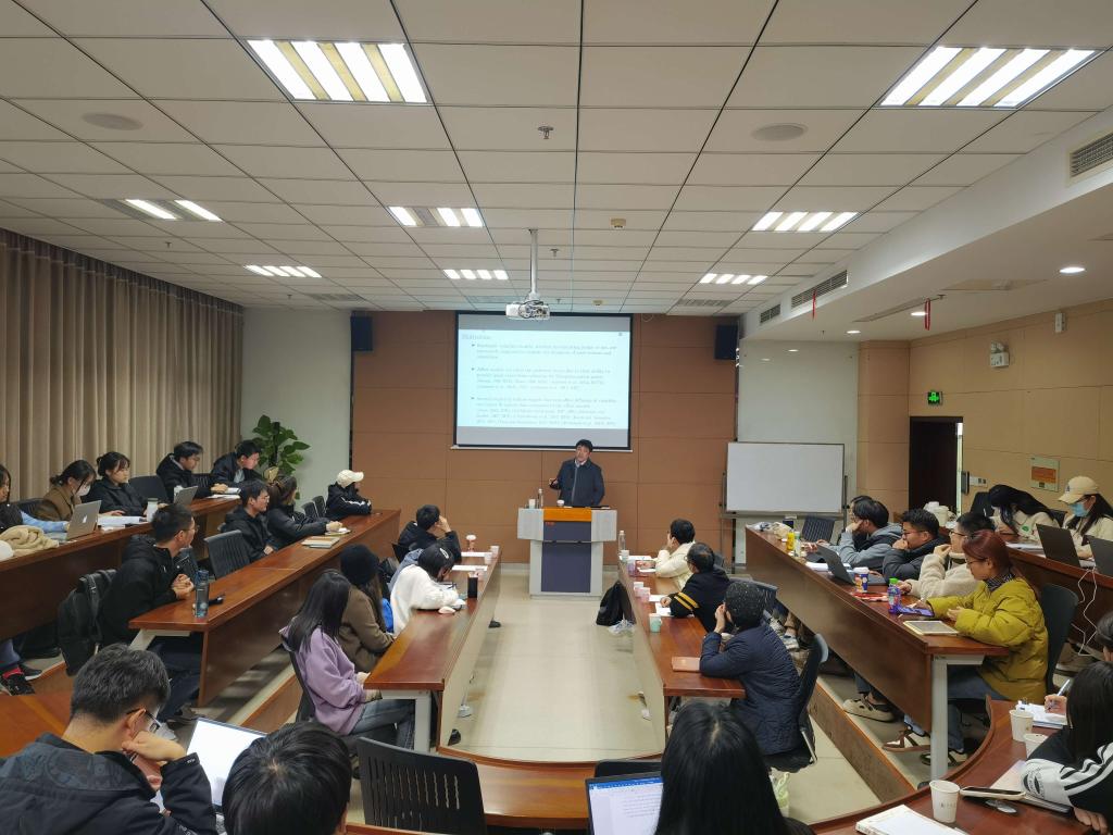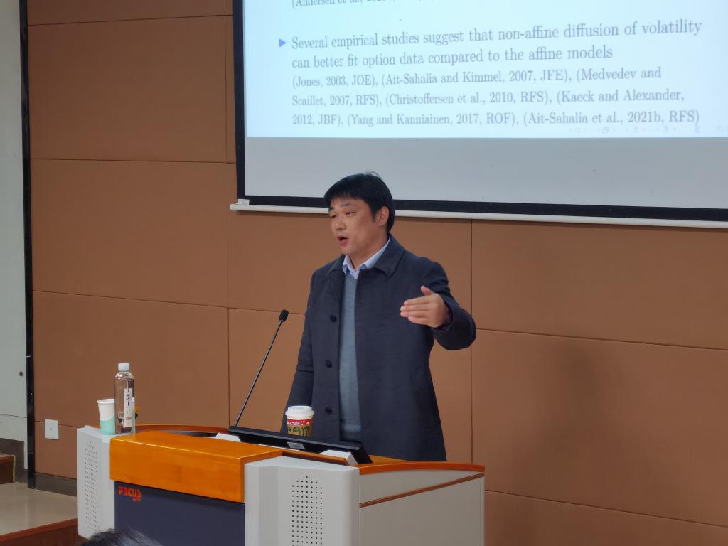 2023年12月5日下午,“商学大讲堂”系列学术讲座第232讲在成人片 116东方厅举行。南京大学成人片 金融与保险学杨念副教授应邀作题为《Double-exponential jumps in returns and GARCH diffusion in volatilities: Evidence from the Chinese SSE 50ETF option market》的学术讲座。本次讲座由成人片 金融系陈文婷教授主持,金融系教师、应用经济学、金融专业的本科生和研究生50余人参与。