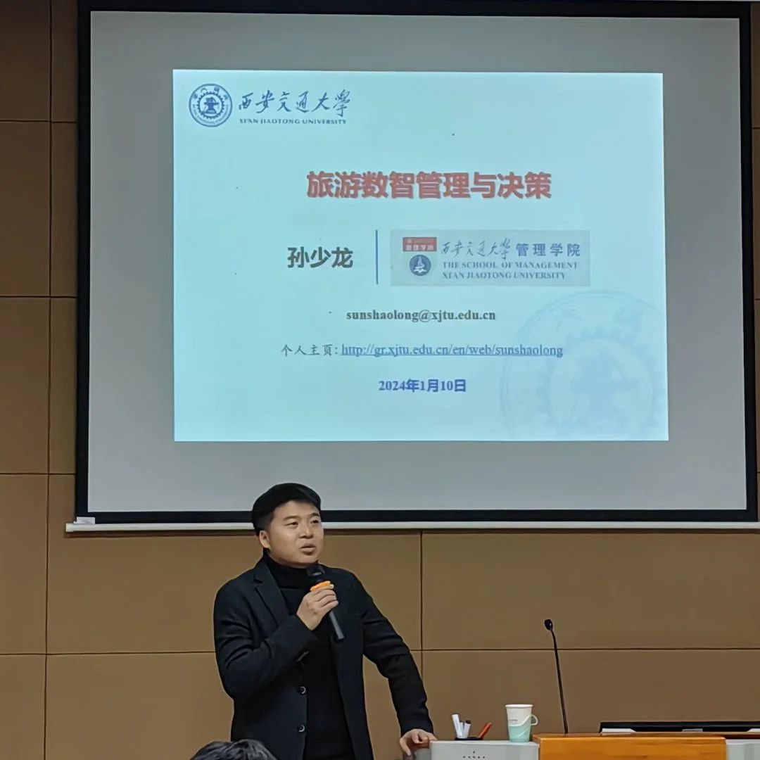 1月10日下午,“商学大讲堂”系列学术讲座第235讲在成人片 116报告厅举行。国家重点研发计划首席青年科学家、西安交通大学青年拔尖人才、管理学院孙少龙教授应邀作题为“旅游数智管理与决策”的学术讲座。本次讲座由成人片 副院长刘勇教授主持,成人片 教师及管理科学与工程、物流工程与管理、工业工程与管理专业研究生50余人参加。