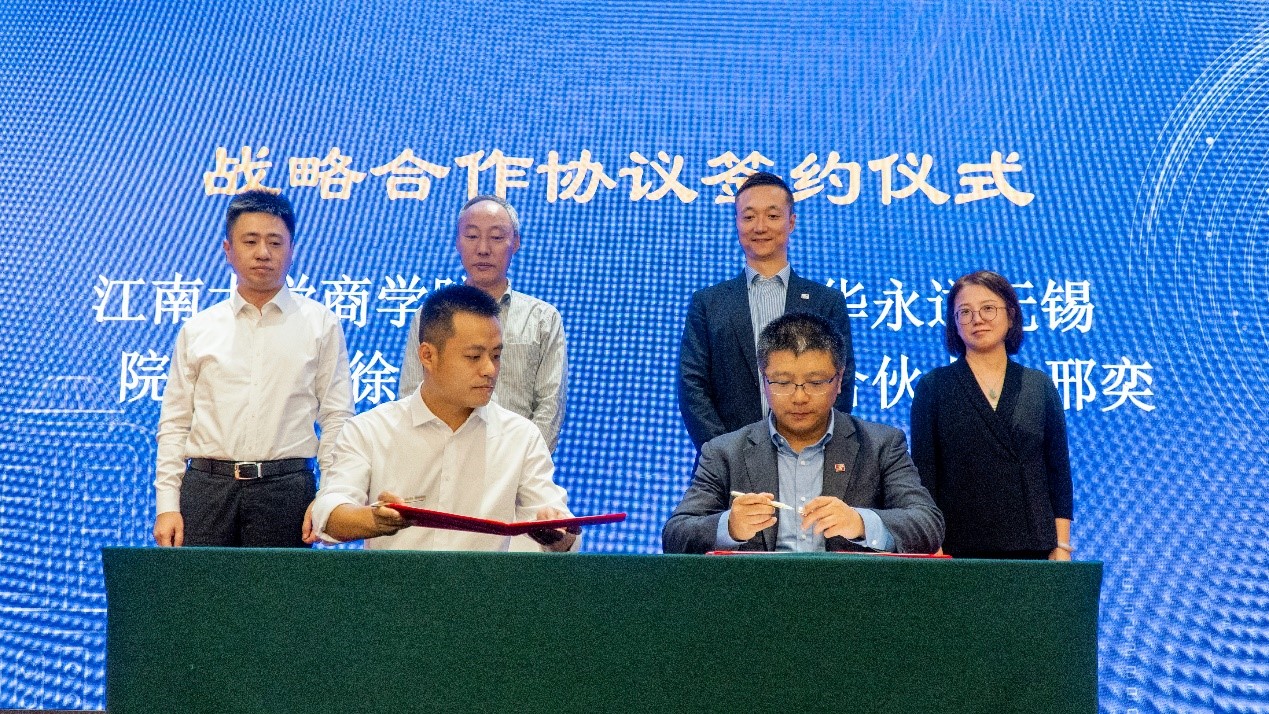 党委常委、党委统战部部长朱飞,普华永道中国品牌与传讯主管合伙人秦洁,无锡市工业和信息化局副局长秦晓华,无锡市发展改革研究中心主任陆敏敏见签。