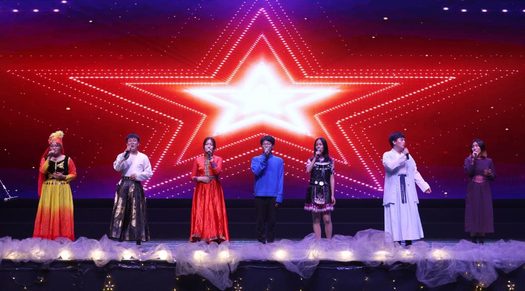 “赞歌颂党恩 唱响新时代”活动获得一等奖的工商管理教工党支部演唱了歌曲《春天的故事》、赞歌活动优胜代表演唱了歌曲《强国一代有我在》、企业家辅导员主席团副主席陈志荣和艺术团主持部同学带来了朗诵《百年峥嵘》、少数民族学生带来了乐器合唱《我和我的祖国》,庆祝建党100周年的同时,也表达了青年一代生逢盛世、矢志奋斗的决心与担当。第二篇章“毕业不散场”中,李易谦、闫亦伟、李明泽、许豪、孙琪带来的《歌曲串烧——话年少》,成人片