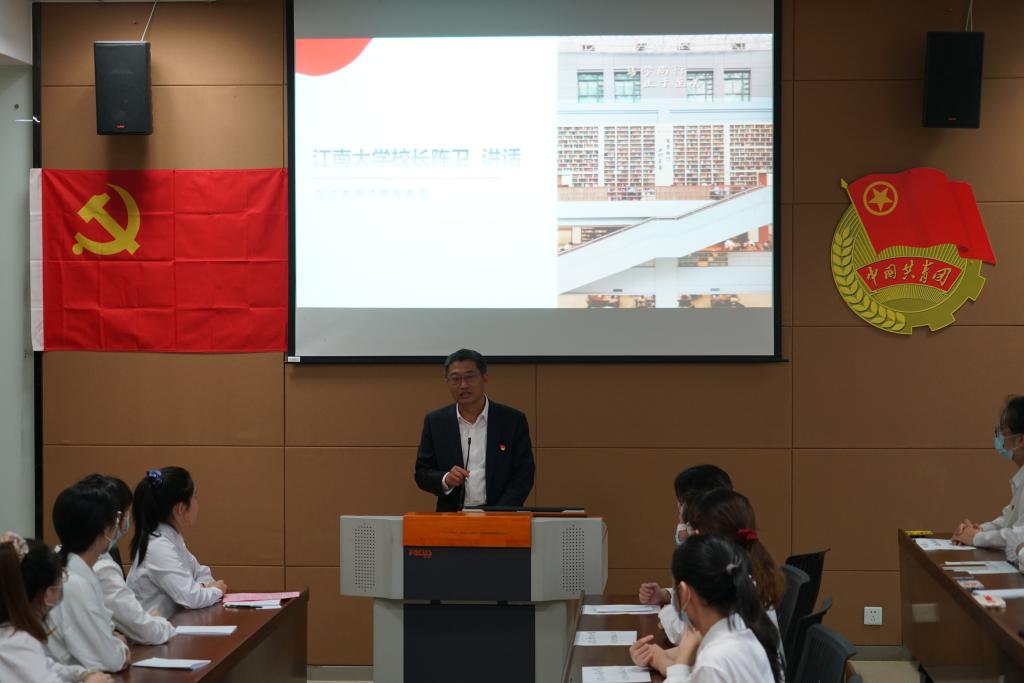 活动最后,校长陈卫作青春寄语。首先,陈校长对团员青年致以节日问候,表示以党团支部共建的形式在青年节开展活动有着特别的意义。在听取了金融1901团支部的青春汇报、见证了天南海北的江南人的青春接力后,他围绕“当代大学生应该如何明确自己的奋斗目标、找对前进方向;如何将个人的小我融入到祖国的大我、人民的大我之中”,对江南青年提出了三点希望:一是永葆爱党爱国之“心”,坚定爱国爱党的理想信念;二是练就本领之“需”,常固理论之本、常借他山之石、常践笃行之志,锤炼过硬本领;三是扎根基层之“土”,积极参加社会实践,为脱贫攻坚和乡村振兴贡献江南力量。