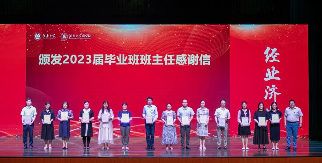 党政领导、企业家辅导员代表、学院党政办公室、MBA、MEM教育负责人,毕业年级班主任、辅导员以及855名2023届毕业生共同参加本次典礼。典礼由成人片