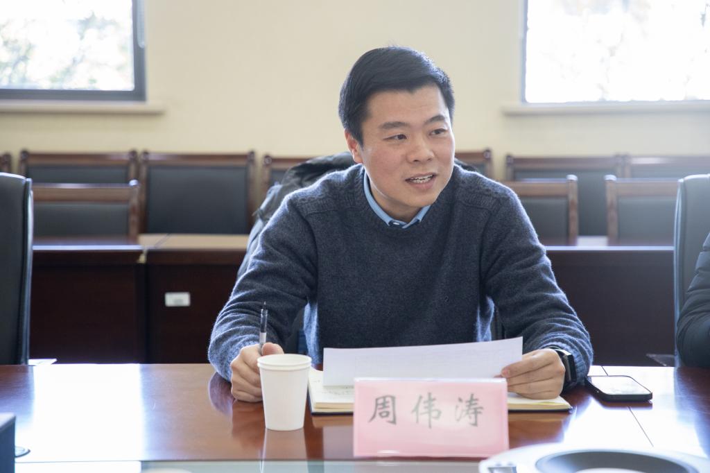 孙小芳代表学院对学生工作处一行的到来表示热烈欢迎,向学工处各位领导对学院学生工作的指导和关心表示感谢,并围绕“培根铸魂,增强思政教育工作效能”“学风创优,健全学生发展支持系统”“精准供给,提升就业指导服务质效”“严守底线,夯实发展安全稳定根基”四方面,汇报学院学生工作重点及思考。