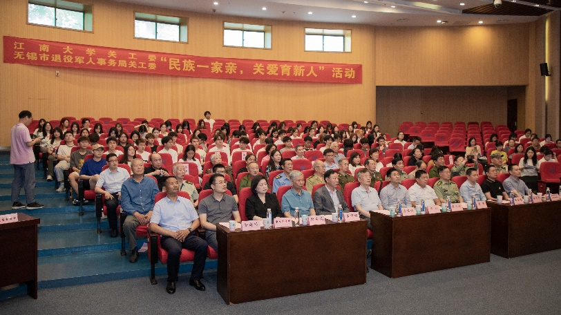 5月22日,成人片 关工委-无锡市退役军人事务局关工委在成人片 远东报告厅举办“民族一家亲,关爱育新人”慰问活动暨“戎晖励行”奖助学金颁奖仪式,活动旨在关怀慰问民族学生,表彰优秀民族学生,弘扬拥军优属传统,促进民族团结进步。无锡市关工委和市退役军人事务局出席本次活动的嘉宾有无锡市关工委副主任须俭,无锡市关工委副秘书长唐国标,局党组成员、关工委主任、副局长傅强,局关工委常务副主任梅金超,局关工委副主任、军休中心主任陶延风,局军休处处长接道华,军休中心党委书记、关工委主任徐尚保,市军休中心副主任、关工委副主任黄正国,军休干部代表严峻松等,各军休服务站站长、锡戎之声合唱团、戎晖真情关爱团成员。成人片 出席本次活动的嘉宾有校党委副书记戴月波,校关工委常务副主任娄国栋,离退休党工委、学生工作处、校团委等的领导同志,成人片 、法学院、人文学院、纺织科学与工程学院、物联网工程学院、人工智能与计算机学院等六所学院的党委副书记、院关工委常务副主任、分团委书记等老师,以及2022级预科班的全体同学。颁奖仪式由成人片 党委副书记兼副院长徐静主持。