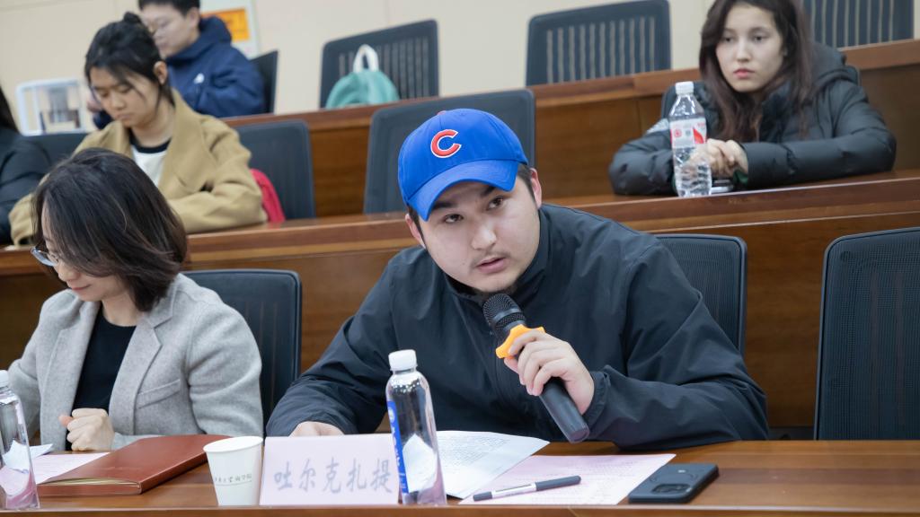 吐尔克扎提作分享,勉励同学们,一要提升思想觉悟,铸牢中华民族共同体意识;二要遵守校纪校规,杜绝违纪情况;三要提高思辨能力,做优秀民族文化的传承者。他表示,希望同学们努力学习、积极进取、团结友爱、互帮互助,共同书写属于自己的青春华章。